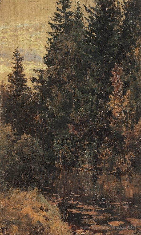Ti offriamo una riproduzione artigianale su tela dell'opera famosa 'Stagno' di Vasily Polenov, dal Museo delle Riproduzioni.