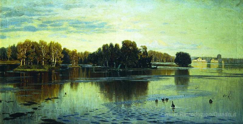 Ti offriamo una riproduzione artigianale su tela dell'opera famosa 'Stagno. Sera d'estate.' di Volodymyr Orlovsky, dal Museo delle Riproduzioni.