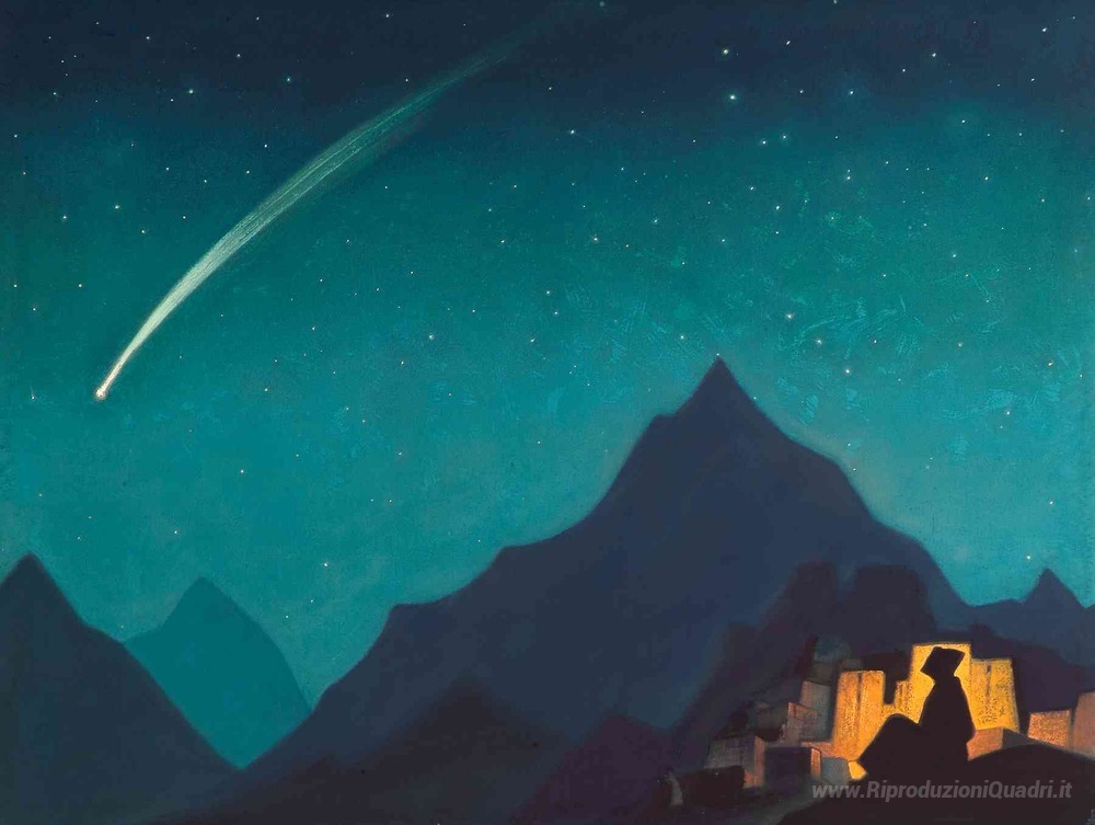 Ti offriamo una riproduzione artigianale su tela dell'opera famosa 'Star of the Hero' di Nicholas Roerich, dal Museo delle Riproduzioni.