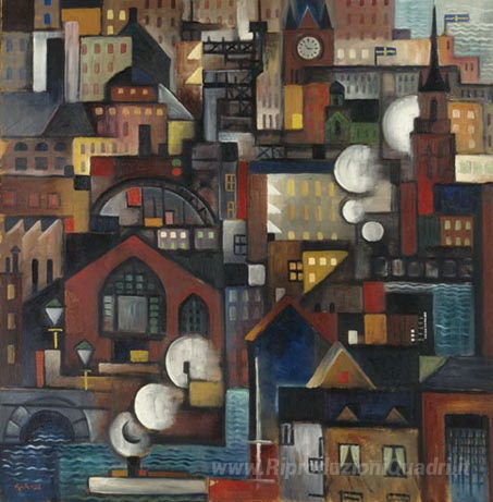 Ti offriamo una riproduzione artigianale su tela dell'opera famosa 'Stoccolma fr?n ateljén' di Gosta Adrian-Nilsson, dal Museo delle Riproduzioni.