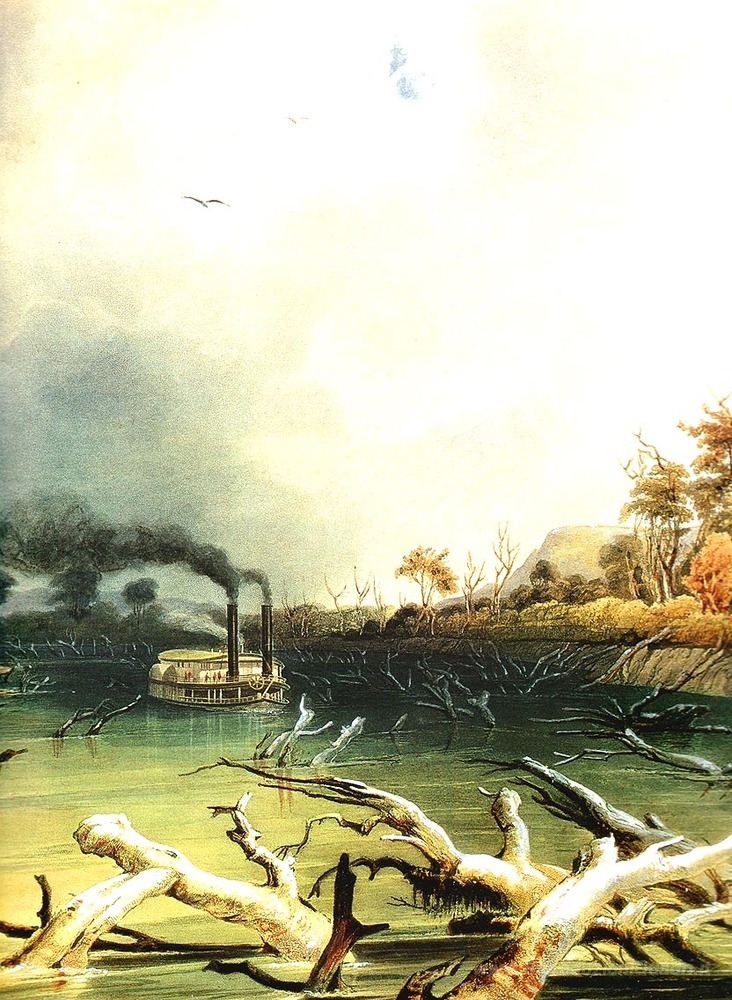 Ti offriamo una riproduzione artigianale su tela dell'opera famosa 'Strappi sul fiume Missouri' di Karl Bodmer, dal Museo delle Riproduzioni.