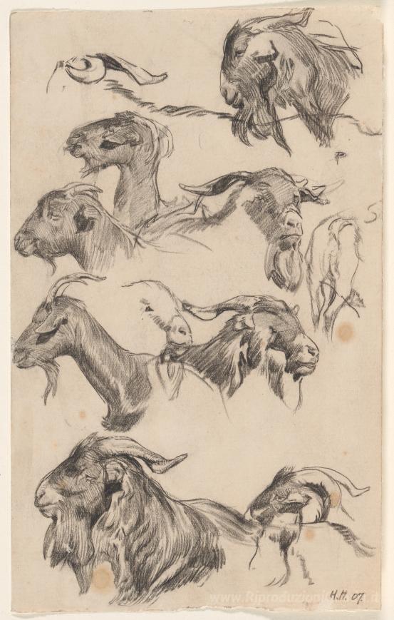 Ti offriamo una riproduzione artigianale su tela dell'opera famosa 'Studio di capre' di Hans Heysen, dal Museo delle Riproduzioni.