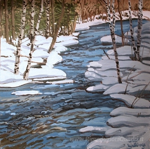 Ti offriamo una riproduzione artigianale su tela dell'opera famosa 'Studio per Blu Ducktrap' di Neil Welliver, dal Museo delle Riproduzioni.
