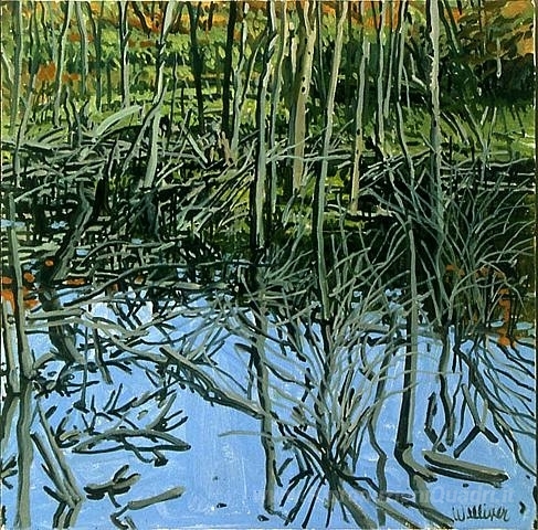 Ti offriamo una riproduzione artigianale su tela dell'opera famosa 'Studio per Low Water - Flowage del cavaliere' di Neil Welliver, dal Museo delle Riproduzioni.