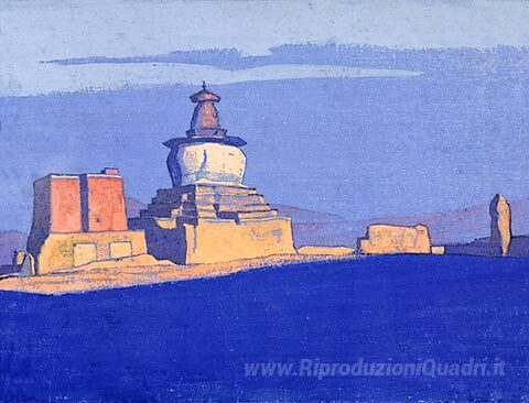 Ti offriamo una riproduzione artigianale su tela dell'opera famosa 'Stupa a Chung-Chu' di Nicholas Roerich, dal Museo delle Riproduzioni.