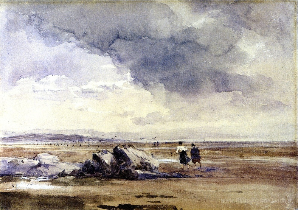 Ti offriamo una riproduzione artigianale su tela dell'opera famosa 'Su Lancaster Sands, Bassa marea' di David Cox, dal Museo delle Riproduzioni.