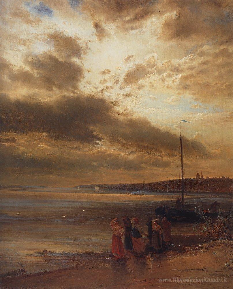Ti offriamo una riproduzione artigianale su tela dell'opera famosa 'Sul Volga' di Aleksey Savrasov, dal Museo delle Riproduzioni.