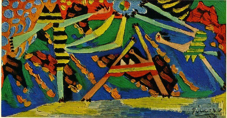 Ti offriamo una riproduzione artigianale su tela dell'opera famosa 'Sulla spiaggia, Dinard' di Pablo Picasso, dal Museo delle Riproduzioni.