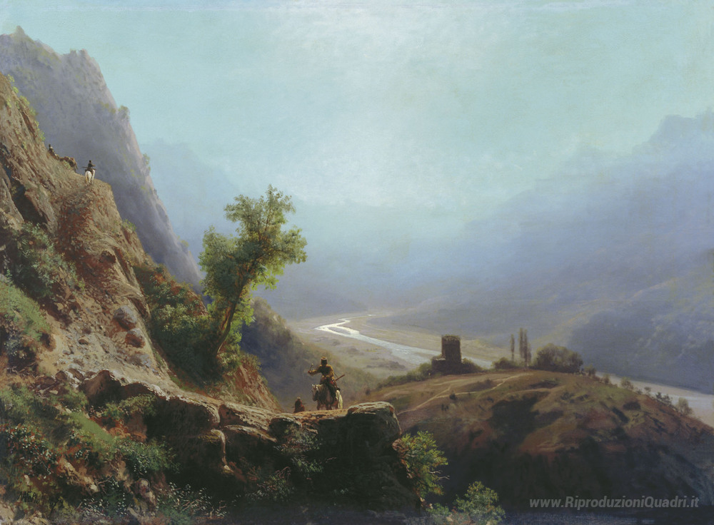 Ti offriamo una riproduzione artigianale su tela dell'opera famosa 'Sulle montagne del Caucaso' di Lev Lagorio, dal Museo delle Riproduzioni.
