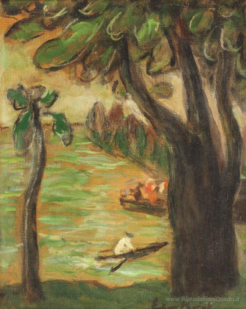 Ti offriamo una riproduzione artigianale su tela dell'opera famosa 'Sulle rive del lago' di Micaela Eleutheriade, dal Museo delle Riproduzioni.