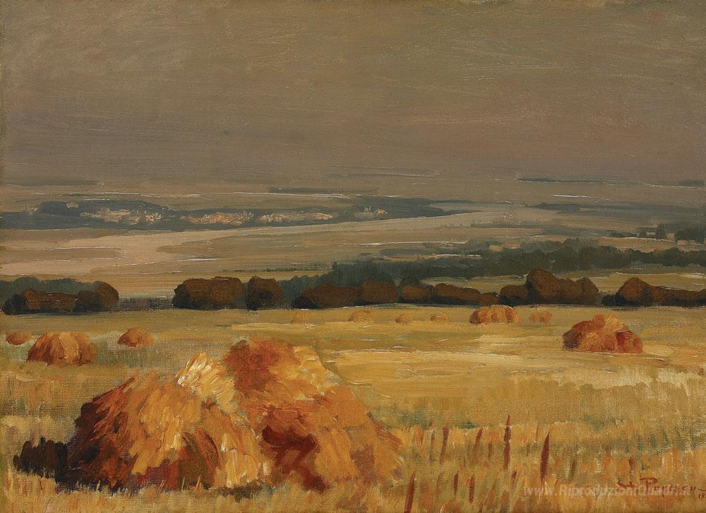 Ti offriamo una riproduzione artigianale su tela dell'opera famosa 'Summer Landscape' di Stefan Popescu, dal Museo delle Riproduzioni.