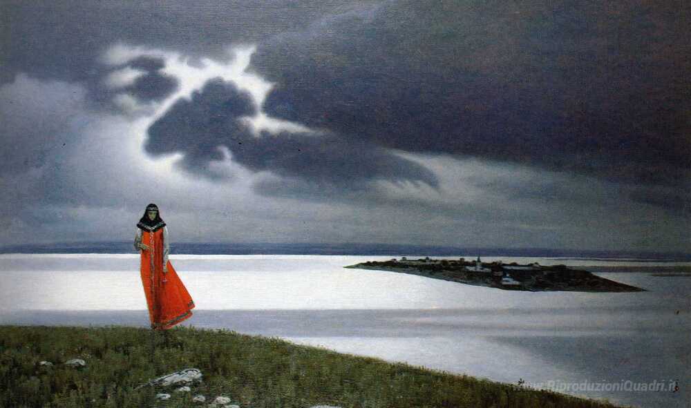 Ti offriamo una riproduzione artigianale su tela dell'opera famosa 'Sviyazhsk' di Konstantin Vasilyev, dal Museo delle Riproduzioni.