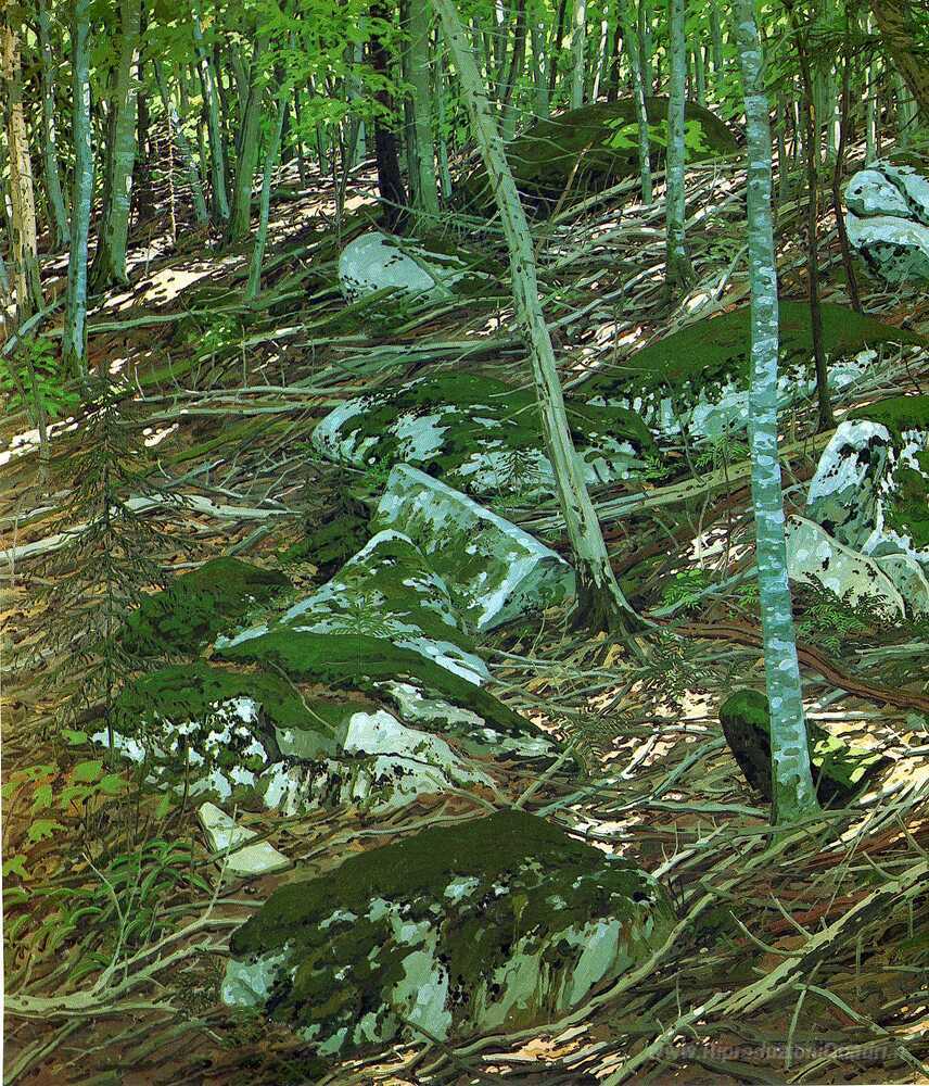 Ti offriamo una riproduzione artigianale su tela dell'opera famosa 'Tardo Luce' di Neil Welliver, dal Museo delle Riproduzioni.