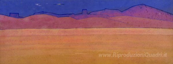 Ti offriamo una riproduzione artigianale su tela dell'opera famosa 'Tempe-jal-tzen-baykin (Città del mafioso Ja Lama)' di Nicholas Roerich, dal Museo delle Riproduzioni.