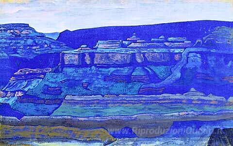 Ti offriamo una riproduzione artigianale su tela dell'opera famosa 'Templi Blu' di Nicholas Roerich, dal Museo delle Riproduzioni.