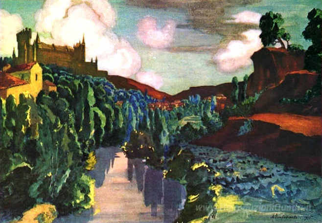 Ti offriamo una riproduzione artigianale su tela dell'opera famosa 'Tenuto conto della Alcazar. Segovia.' di Anna Ostroumova-Lebedeva, dal Museo delle Riproduzioni.