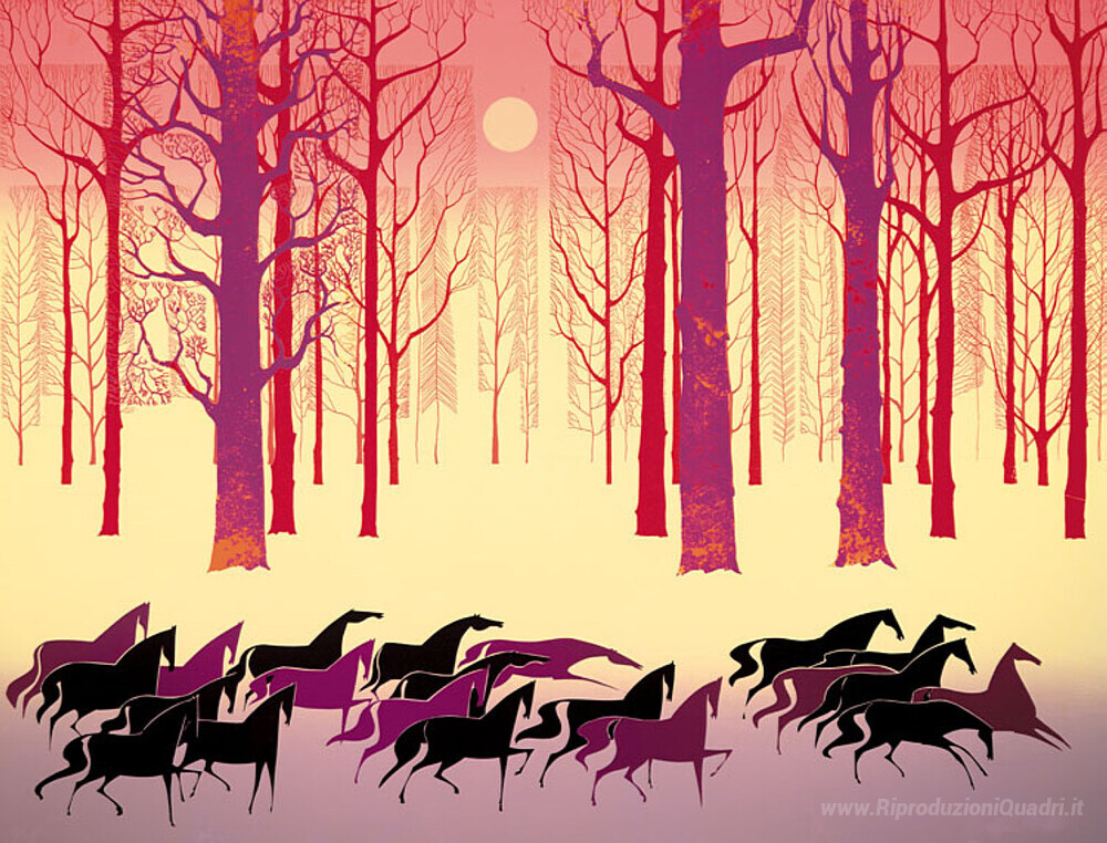 Ti offriamo una riproduzione artigianale su tela dell'opera famosa 'Terra di Midnite Sun' di Eyvind Earle, dal Museo delle Riproduzioni.