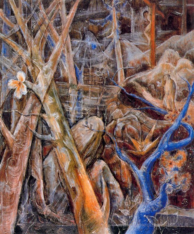 Ti offriamo una riproduzione artigianale su tela dell'opera famosa 'The Blue Bough' di Albert Bloch, dal Museo delle Riproduzioni.