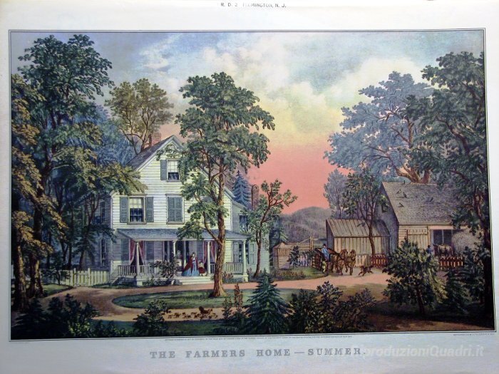 Ti offriamo una riproduzione artigianale su tela dell'opera famosa 'The Farmers Home - Estate' di Currier and Ives, dal Museo delle Riproduzioni.