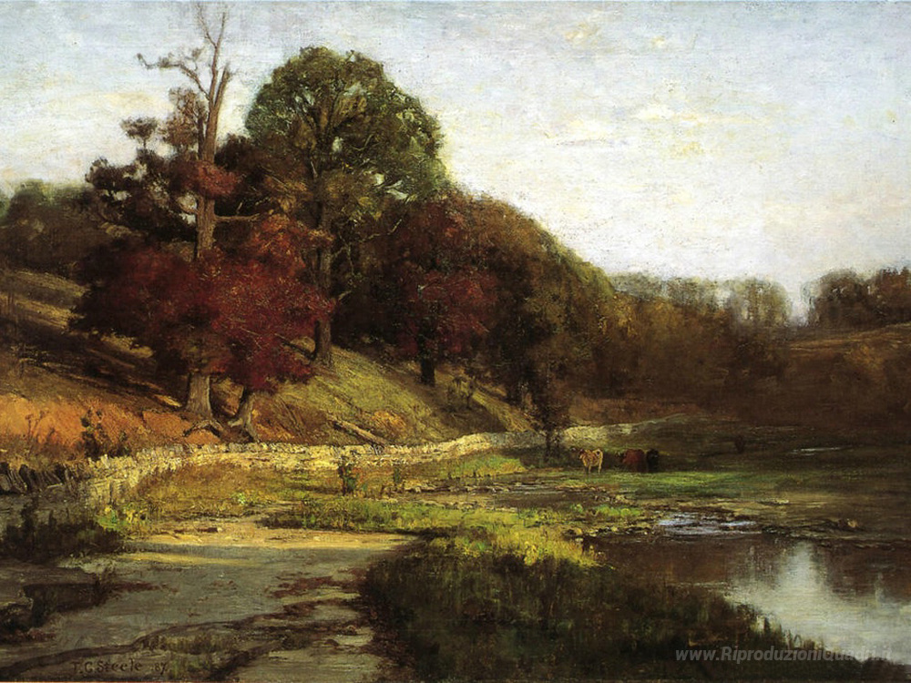 Benvenuti nella nostra selezione esclusiva di dipinti a olio, dove ogni opera racconta una storia attraverso la maestria degli artisti italiani. Oggi vi presentiamo The Oaks, un capolavoro del talentuoso artista T. C. Steele. La sua abilità nell'utilizzare la tecnica dell'olio permette di cogliere la luce e i colori della natura in una maniera sublime, trasformando ogni tela in una finestra su un mondo di bellezza e tranquillità.