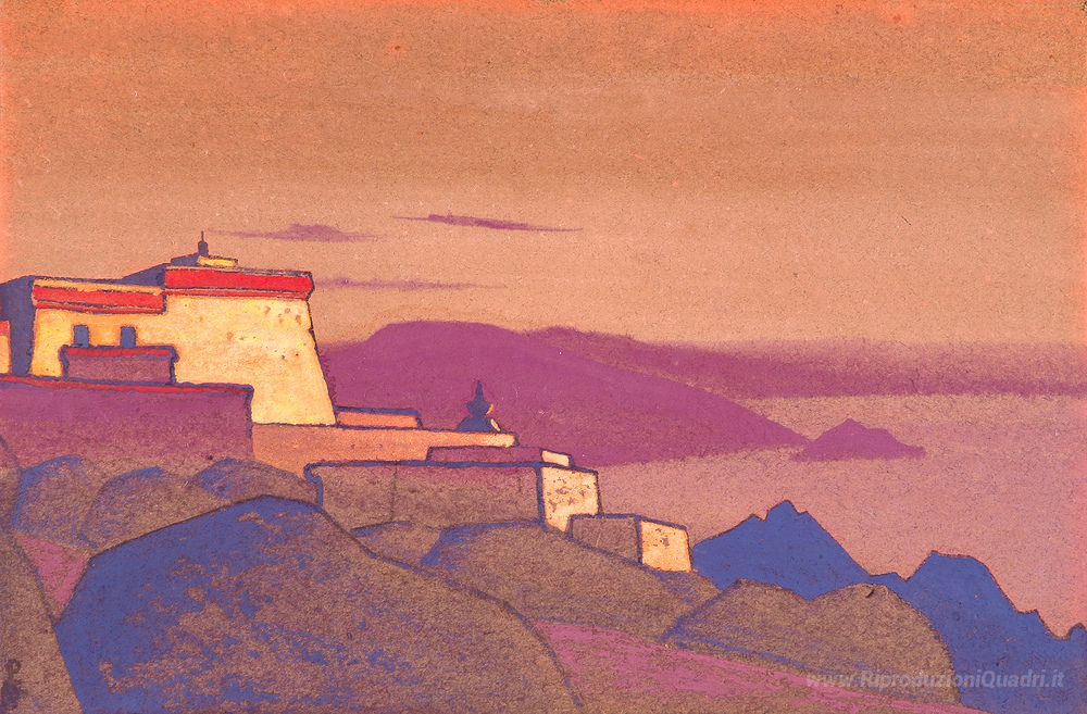 Ti offriamo una riproduzione artigianale su tela dell'opera famosa 'Tibet. Monastero Gelug-pa.' di Nicholas Roerich, dal Museo delle Riproduzioni.