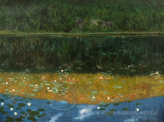 Il dipinto Tjernet traspone la serenità e la poesia della natura, esaltando i toni verdi e blu che si fondono armoniosamente. Attraverso una tecnica d'olio ricca e dettagliata, Kittelsen riesce a catturare l'essenza del paesaggio norvegese, creando un'opera che invita alla riflessione e alla contemplazione. Questa creazione non solo arricchisce l'ambiente domestico, ma conferisce anche una dimensione di eleganza e serenità, trasformando ogni spazio in un rifugio di bellezza e tranquillità.