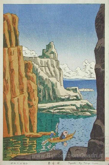 Ti offriamo una riproduzione artigianale su tela dell'opera famosa 'Tojinbo' di Asano Takeji, dal Museo delle Riproduzioni.