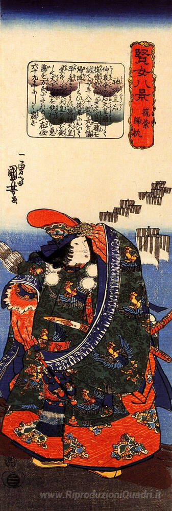Ti offriamo una riproduzione artigianale su tela dell'opera famosa 'Tornando barche a Tsukushi' di Utagawa Kuniyoshi, dal Museo delle Riproduzioni.