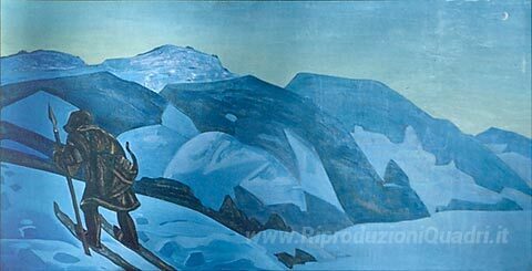 Ti offriamo una riproduzione artigianale su tela dell'opera famosa 'Tracce' di Nicholas Roerich, dal Museo delle Riproduzioni.