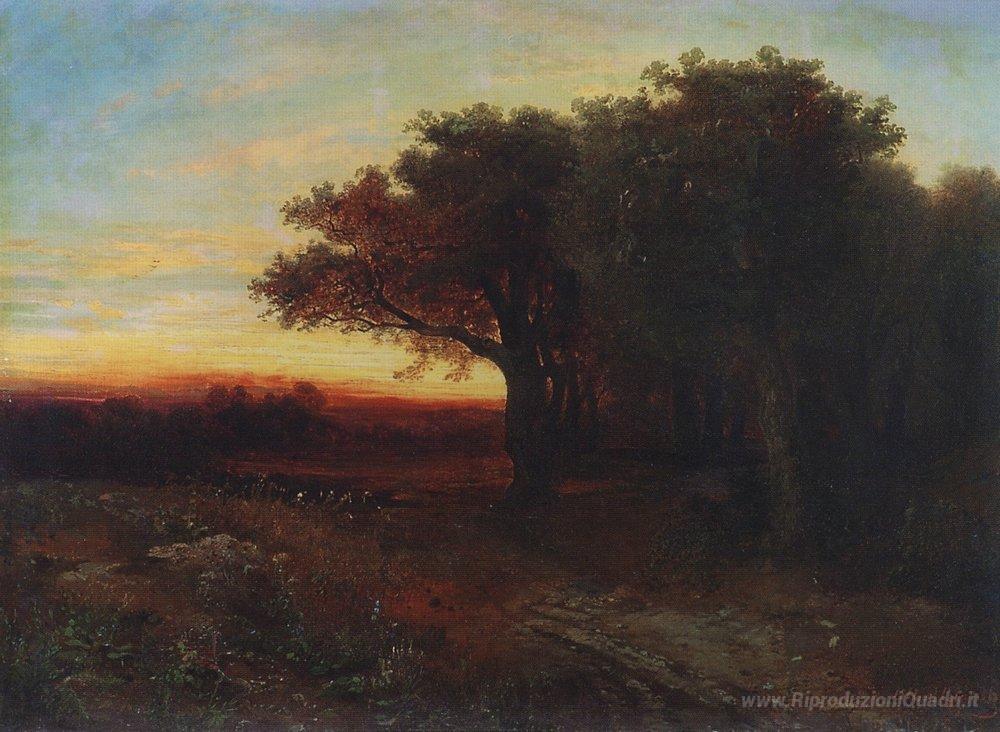 Ti offriamo una riproduzione artigianale su tela dell'opera famosa 'Tramonto' di Aleksey Savrasov, dal Museo delle Riproduzioni.