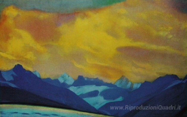 Ti offriamo una riproduzione artigianale su tela dell'opera famosa 'Tramonto su Malana' di Nicholas Roerich, dal Museo delle Riproduzioni.