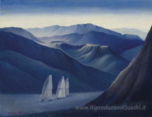 Ti offriamo una riproduzione artigianale su tela dell'opera famosa 'Tre figure' di Carlos Orozco Romero, dal Museo delle Riproduzioni.