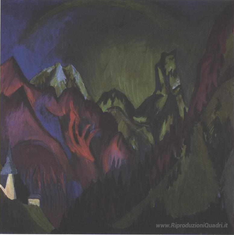 Ti offriamo una riproduzione artigianale su tela dell'opera famosa 'Treni gola vicino Monstein' di Ernst Ludwig Kirchner, dal Museo delle Riproduzioni.