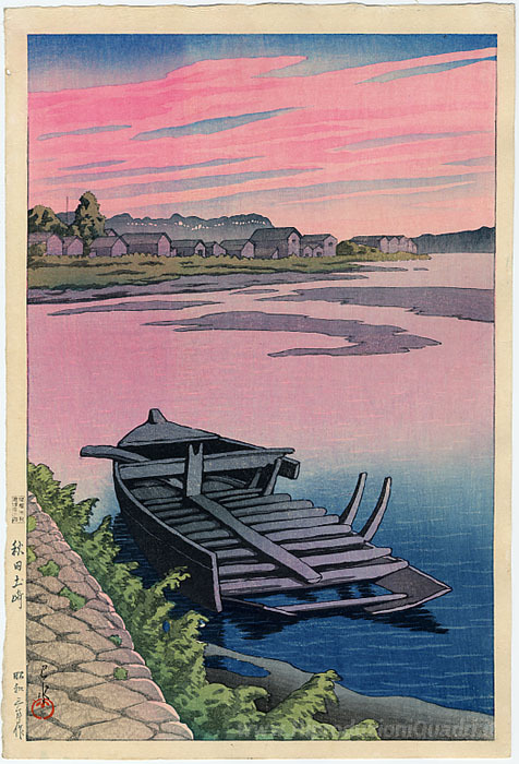 Ti offriamo una riproduzione artigianale su tela dell'opera famosa 'Tsuchizaki, Akita' di Hasui Kawase, dal Museo delle Riproduzioni.