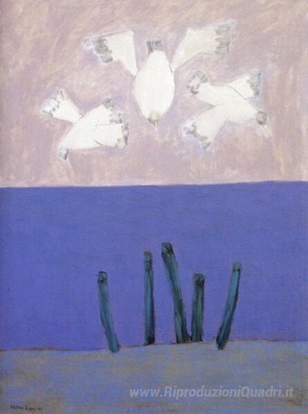 Ti offriamo una riproduzione artigianale su tela dell'opera famosa 'Uccelli sopra il cielo' di Milton Avery, dal Museo delle Riproduzioni.