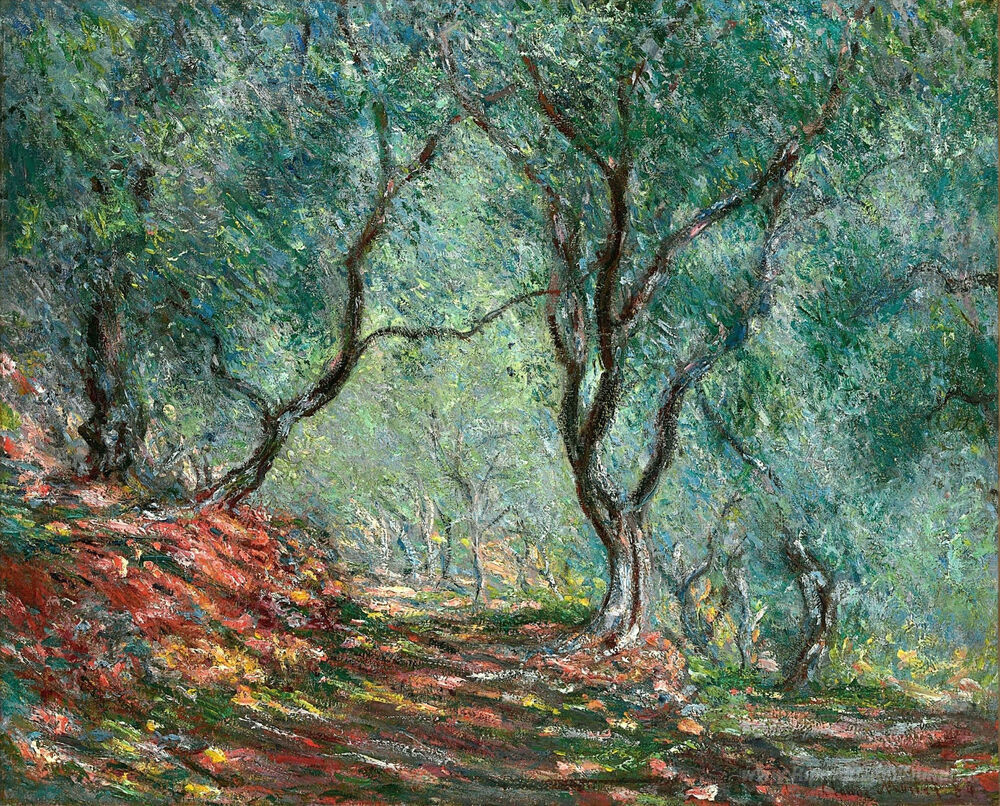 Ti offriamo una riproduzione artigianale su tela dell'opera famosa 'Ulivo Legno Moreno Giardino' di Claude Monet, dal Museo delle Riproduzioni.