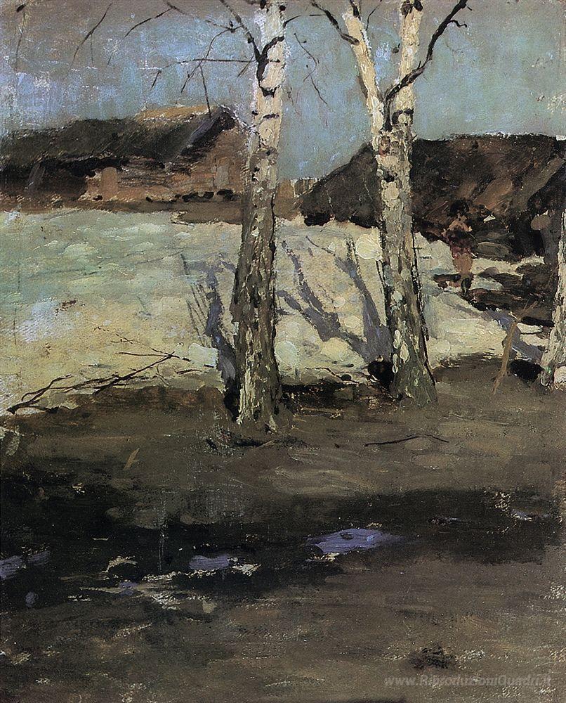 Ti offriamo una riproduzione artigianale su tela dell'opera famosa 'Ultima Neve' di Konstantin Korovin, dal Museo delle Riproduzioni.