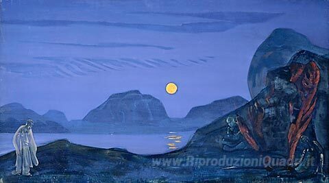 Ti offriamo una riproduzione artigianale su tela dell'opera famosa 'Ultimo viaggio' di Nicholas Roerich, dal Museo delle Riproduzioni.