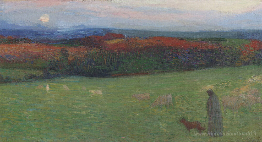 Ti offriamo una riproduzione artigianale su tela dell'opera famosa 'Un campo con Figura' di Henri Martin, dal Museo delle Riproduzioni.