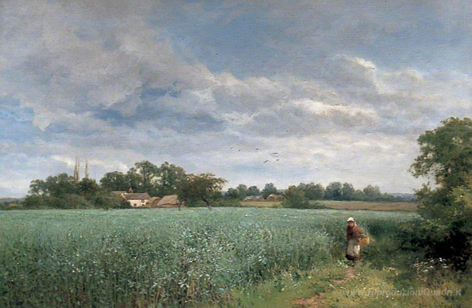 Ti offriamo una riproduzione artigianale su tela dell'opera famosa 'Un fagiolo Field a Pickersleigh, nei pressi di Malvern' di David Bates, dal Museo delle Riproduzioni.