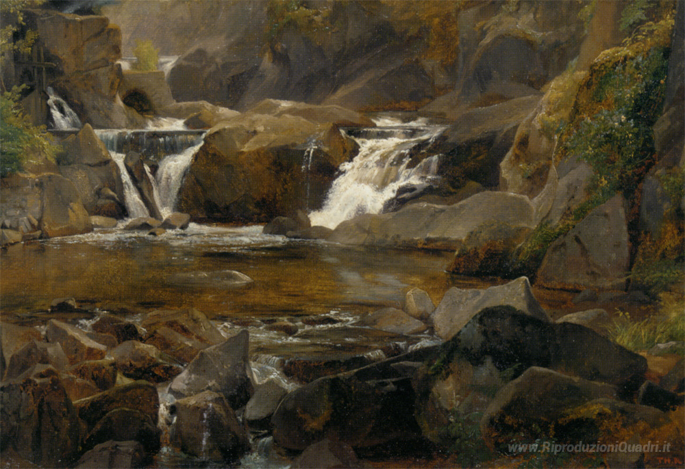 Ti offriamo una riproduzione artigianale su tela dell'opera famosa 'Un flusso con diga in Auvergne' di Theodore Rousseau, dal Museo delle Riproduzioni.