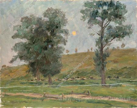 Scopri l'incanto di Un paesaggio al chiaro di luna, un'opera straordinaria dell'artista russo Pyotr Konchalovsky, maestro nel catturare la bellezza della natura attraverso la sua arte. Konchalovsky, noto per il suo stile distintivo, combina influenze impressioniste e realiste, dando vita a paesaggi che sembrano respirare e pulsare di vita. La sua abilità nell'uso dei colori e nella manipolazione della luce porta lo spettatore a immergersi in scene di una bellezza mozzafiato.