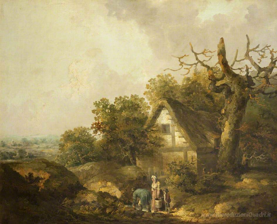 Ti offriamo una riproduzione artigianale su tela dell'opera famosa 'Un rustico' di George Morland, dal Museo delle Riproduzioni.