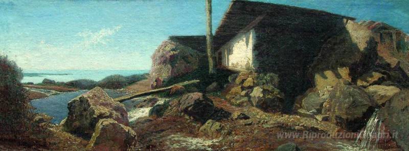 Ti offriamo una riproduzione artigianale su tela dell'opera famosa 'Una casa vicino al mare' di Volodymyr Orlovsky, dal Museo delle Riproduzioni.