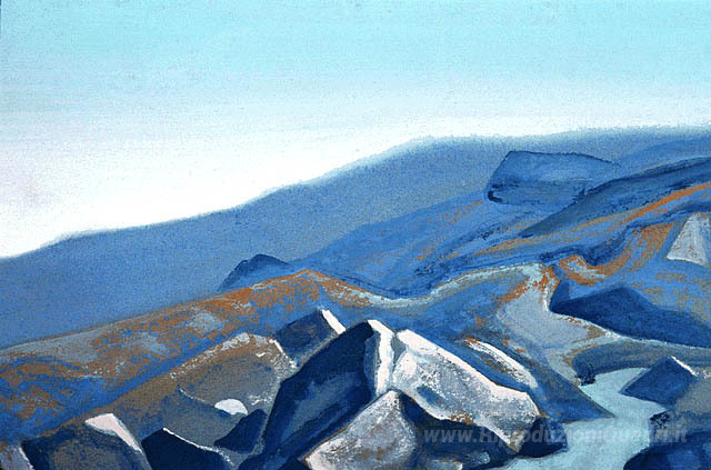 Ti offriamo una riproduzione artigianale su tela dell'opera famosa 'Una collina' di Nicholas Roerich, dal Museo delle Riproduzioni.