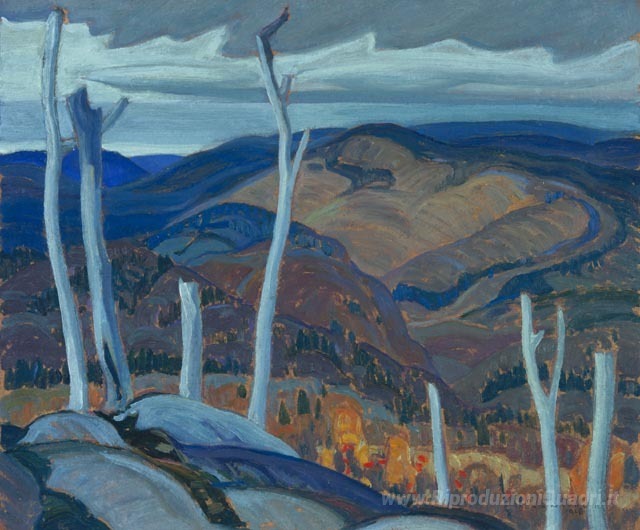 Ti offriamo una riproduzione artigianale su tela dell'opera famosa 'Una giornata grigia' di Franklin Carmichael, dal Museo delle Riproduzioni.