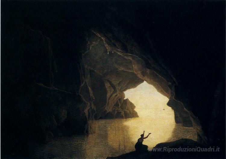 Ti offriamo una riproduzione artigianale su tela dell'opera famosa 'Una grotta nel Golfo di Salernum, con la figura di Julia, bandit' di Joseph Wright, dal Museo delle Riproduzioni.