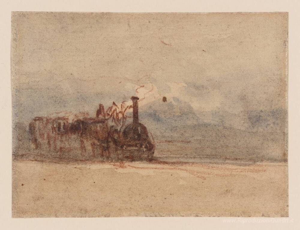 Ti offriamo una riproduzione artigianale su tela dell'opera famosa 'Una locomotiva' di David Cox, dal Museo delle Riproduzioni.