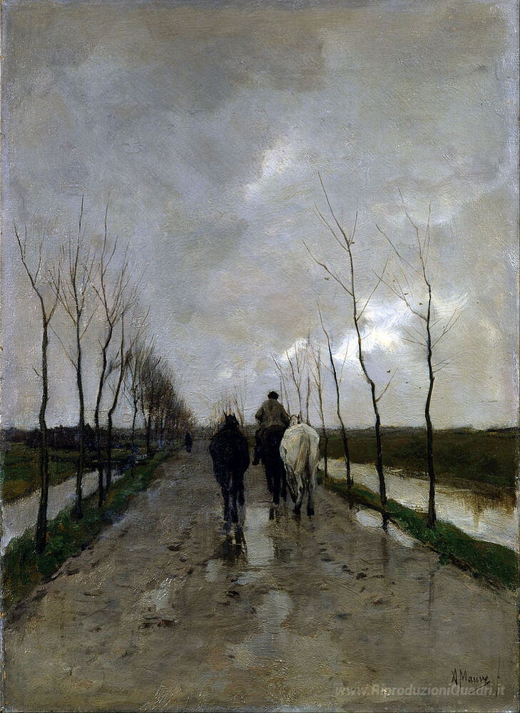 In Una Strada olandese, la serenità del paesaggio rurale si fonde con il dinamismo del lavoro quotidiano, creando un'atmosfera di tranquillità e riflessione. Questo dipinto è ideale per arricchire gli ambienti della tua casa, apportando un tocco di eleganza e cultura. Inserito nel giusto spazio, il capolavoro di Mauve diventa il fulcro della stanza, invitando alla contemplazione e risvegliando l’ammirazione degli ospiti. Aggiungi un pezzo di storia dell’arte nella tua vita quotidiana e trasforma il tuo ambiente con l'arte senza tempo di Anton Mauve.