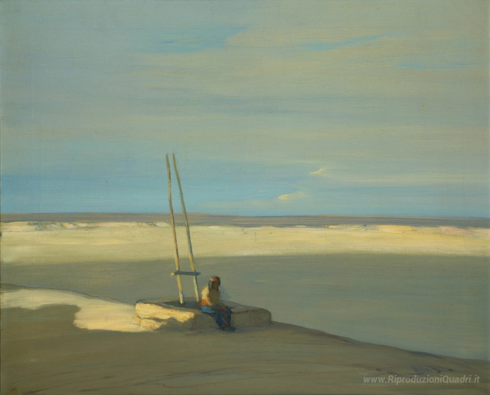 Ti offriamo una riproduzione artigianale su tela dell'opera famosa 'Untitled (A sud-ovest indiano su Kiva)' di Xavier Martinez, dal Museo delle Riproduzioni.